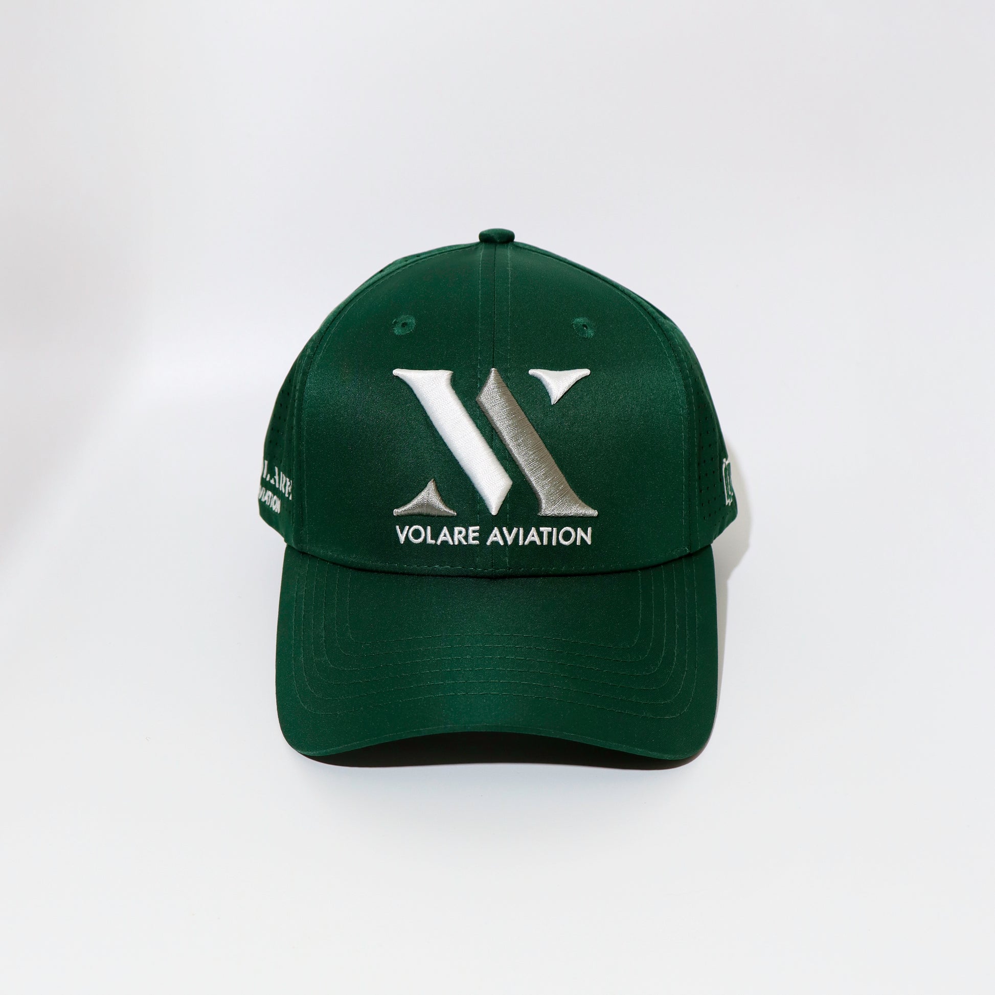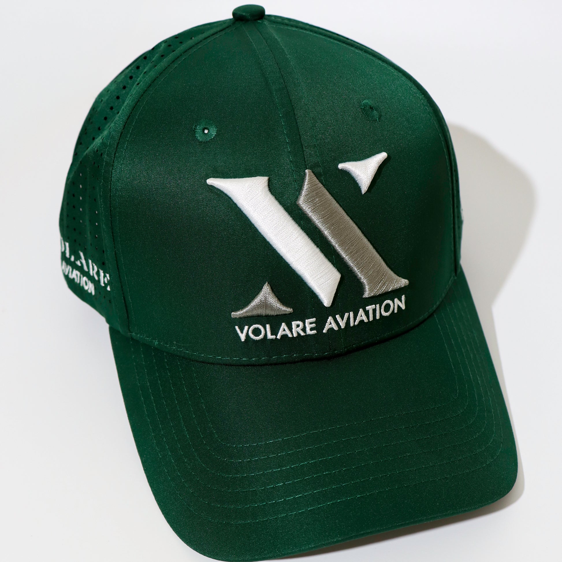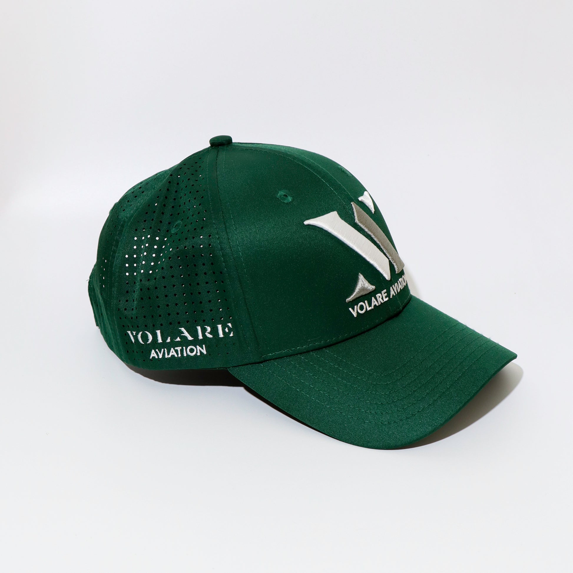 Volare green laser cut mesh baseball cap with logo embroidery.